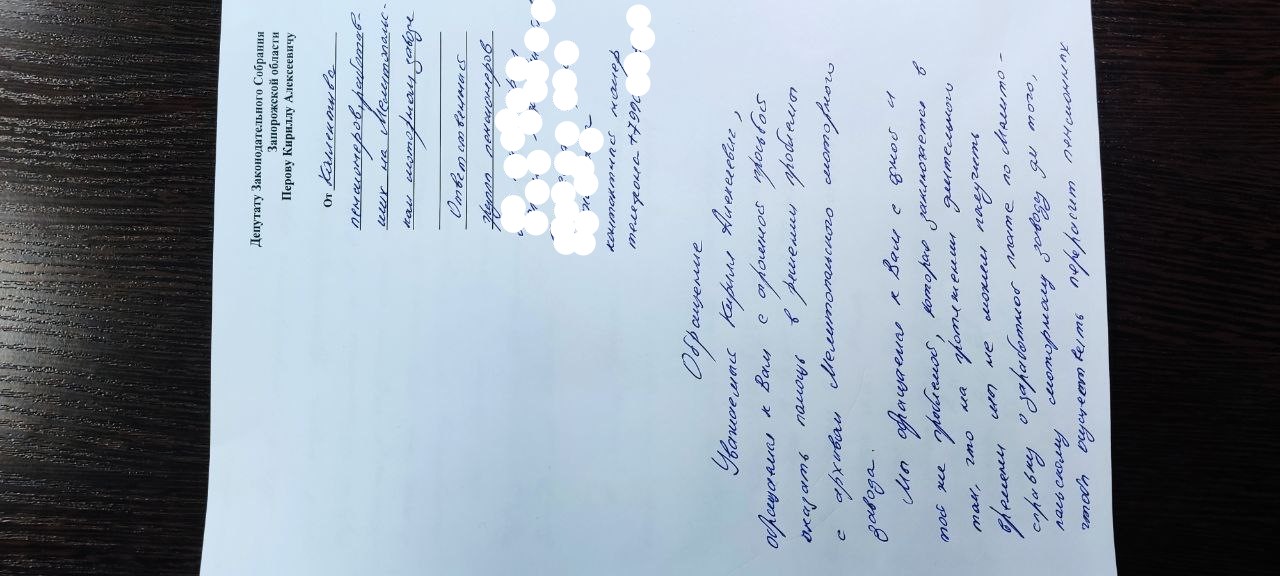 В рамках Всероссийского приема ЛДПР 24 января депутату Заксобрания Запорожской области Кириллу Перову гражданами была озвучена проблема с получением данных из архива Моторного завода для начисления достойной пенсии бывшим работникам предприятия, уже в понедельник около 30 человек пришли в офис ЛДПР (г. Мелитополь), чтобы подписать коллективное обращение